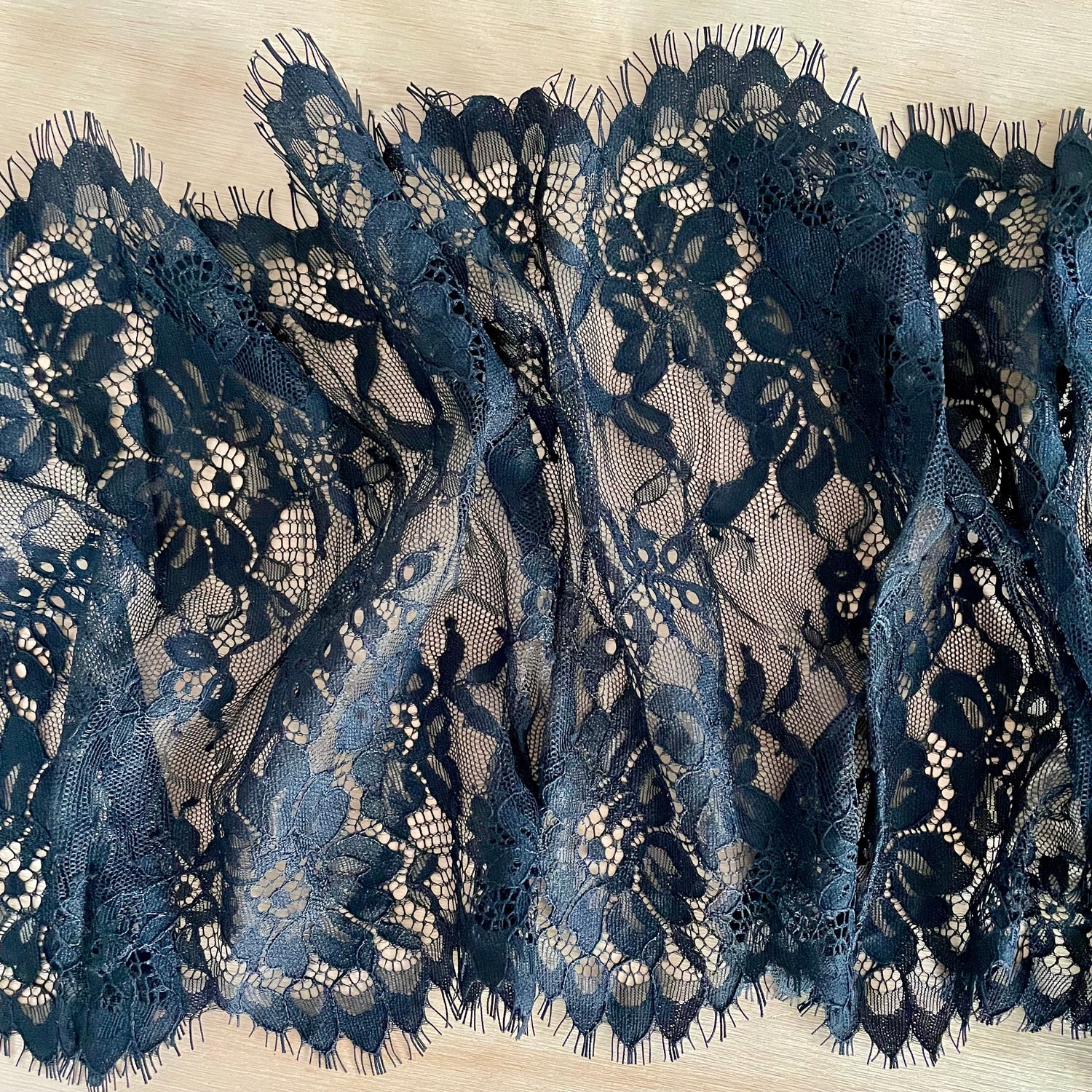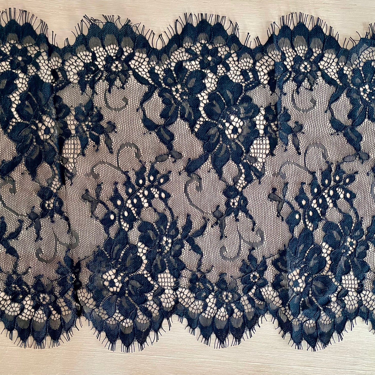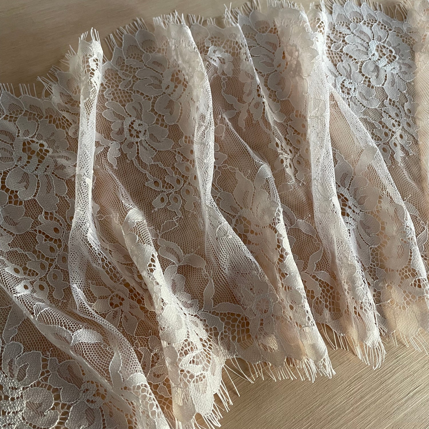 This 25cm rigid eyelash lace brings all the charm of traditional French Leavers lace without the premium price tag. It has a beautifully soft hand-feel, intricate detailing, and an eyelash edge that gives every project an effortless, couture finish.